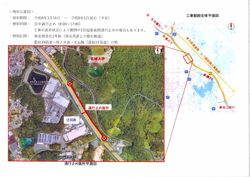 お知らせ 東名高速道路拡張工事に伴う 米野木地区(北山)側道通行止めのお知らせ(予告) 2026.01.29 Tweet Category:回覧板 Author:BO /blog/blog_comments/captcha/25100457 /blog/blog_comments/get_token ≪ 日進東中学校 制服等のリサイクル協力のお願い 東名高速道路 点検作業のお知らせ ≫
