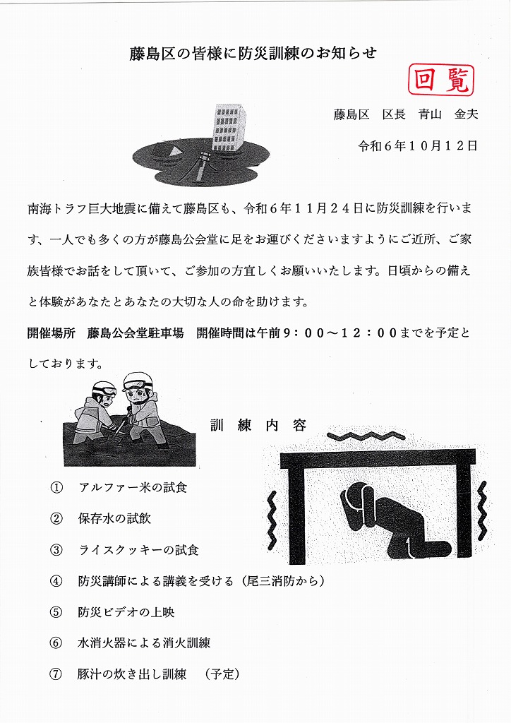 藤島区の皆様に防災訓練のお知らせ 2024.10.17 Tweet Category:回覧板 Author:BO /blog/blog_comments/captcha/68212126 /blog/blog_comments/get_token