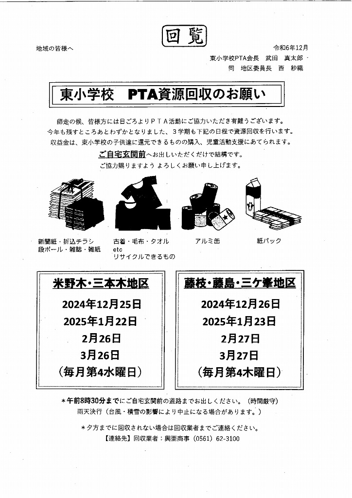 東小学校 PTA資源回収のお願い 2025.01.06 Tweet Category:回覧板 Author:BO /blog/blog_comments/captcha/52696914 /blog/blog_comments/get_token