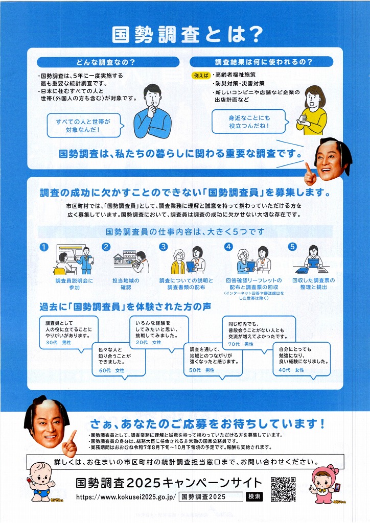令和7年10月1日国勢調査 2025.04.25 Tweet Category:その他 Author:BO /blog/blog_comments/captcha/66822158 /blog/blog_comments/get_token