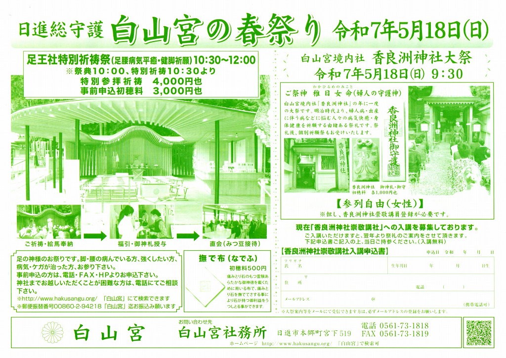 白山宮の春祭り 令和7年5月18日(日) 2025.05.12 Tweet Category:その他 Author:BO /blog/blog_comments/captcha/42054376 /blog/blog_comments/get_token