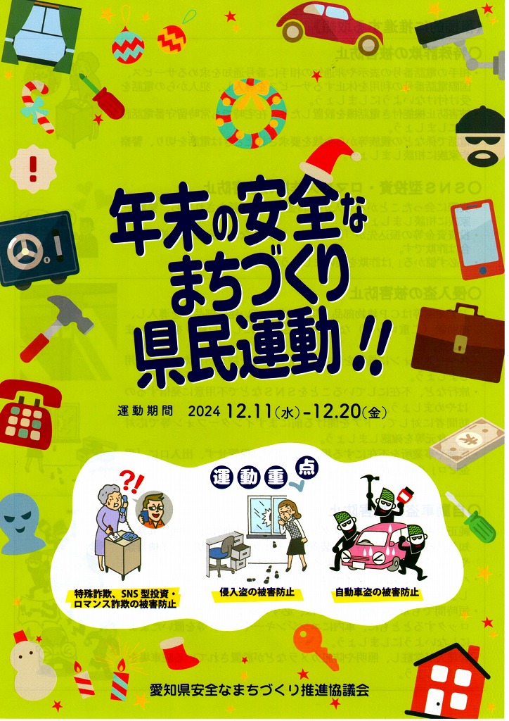 お知らせ 年末の安全なまちづくり 県民運動!! 2024.12.12 Tweet Category:その他 Author:BO /blog/blog_comments/captcha/38442760 /blog/blog_comments/get_token ≪ 米野木交番だより 防犯あいち ≫
