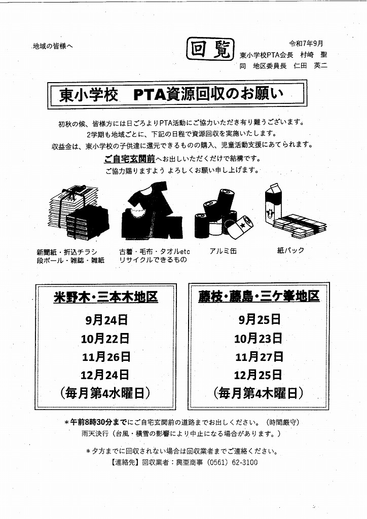 東小学校 PTA資源回収のお願い 2025.09.18 Tweet Category:資源回収 Author:BO /blog/blog_comments/captcha/25199376 /blog/blog_comments/get_token
