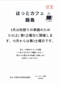 お知らせ ほっとカフェ ほっとCafe藤島 2026.01.29 ほっとカフェ 続きを読む ほっとCafe藤島 2025.11.14 ほっとカフェ 続きを読む ほっとカフェ藤島 2025.08.19 ほっとカフェ 続きを読む ほっとCafe藤島 2025.07.08 ほっとカフェ 続きを読む ふじしま ほっとCafe 2025.04.24 ほっとカフェ 続きを読む ふじしま ほっとCafe 2025.03.24 ほっとカフェ 続きを読む ふじしま ほっと Cafe 2025.01.06 ほっとカフェ 続きを読む