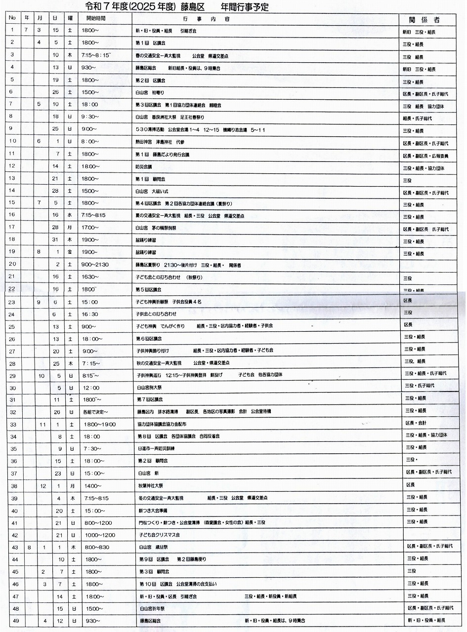 年間行事予定