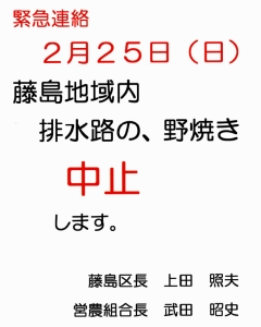 お知らせ 至急 緊急連絡 不審者情報 2024.12.19 至急 東小学校 付近 不審者通報あり 続きを読む 緊急連絡 2月25日(日)藤島地区内 2024.02.24 至急 緊急連絡2月25日(日)藤島地区内 排水路の、野焼き中止します. 続きを読む 区民の皆様 急ぎの連絡です。 2023.06.01 至急 区民の皆様 急ぎの連絡です。1)6月11(日)午前8時45分頃防災サイレンを日進市水防訓練中に 試験吹鳴を、実施します。市内6か所に設置した 続きを読む